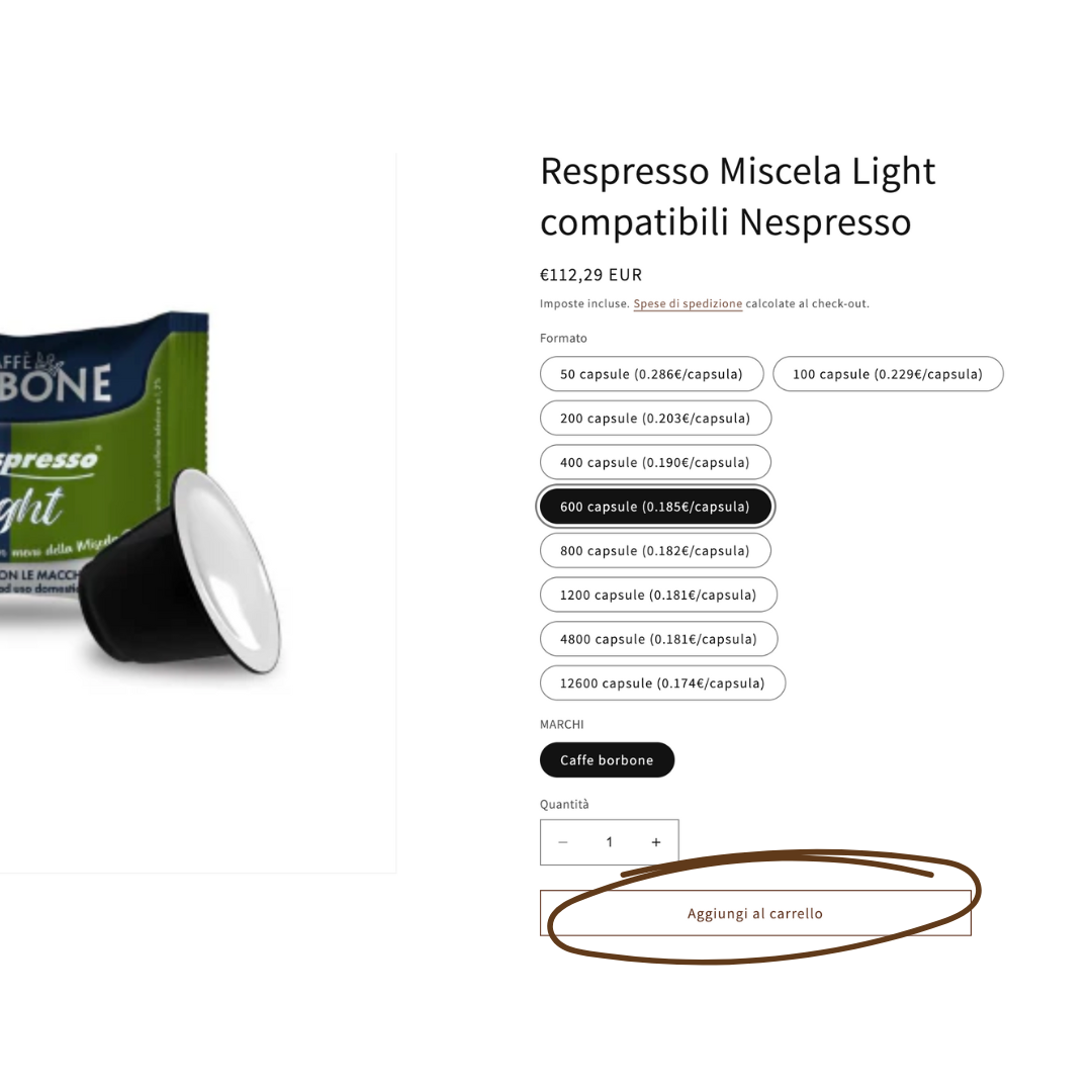 Aggiungi le tue capsule preferite al carrello e procedi verso il checkout