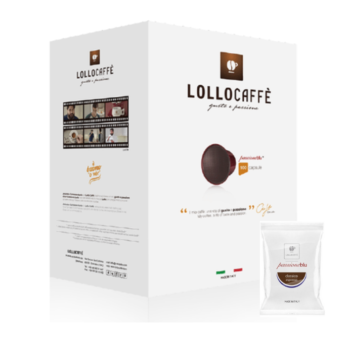 Box Capsule PassioneBlu: formato compatibile anche con le macchine Lavazza Blue, prova il relax che ti regala il Classico Espresso di Lollo Caffè