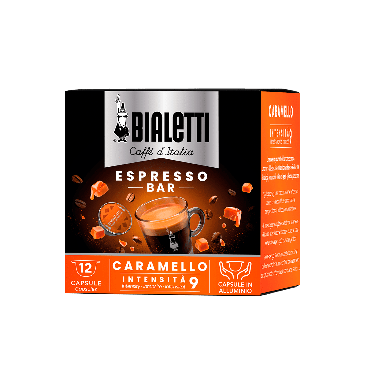 Le capsule Bialetti caramello racchiudono un caffè gourmet dolcemente cremoso.I delicati sentori di vaniglia e le deliziose note di caramello ti regalano in tazza un caffè unico dal gusto goloso e persistente.